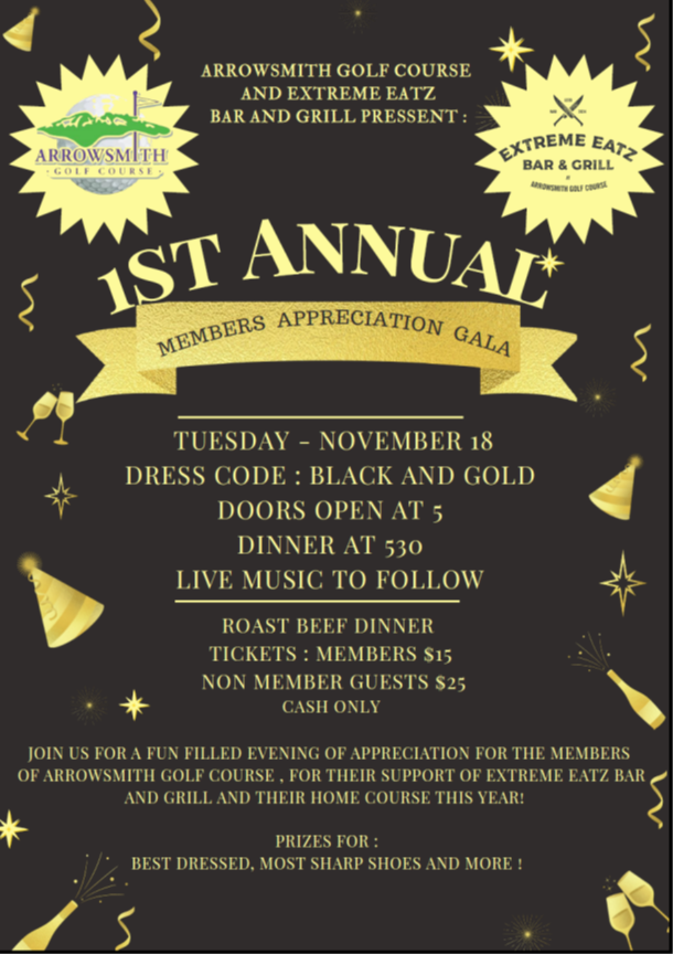 Upcoming Events/Specials What’s happening at Arrowsmith Golf Club Coming next Summer: ♥ Abreast of Life Charity Golf Tournament https://abreastoflifecvi.com/ ♥ Inclusion Parksville Charity Golf Tournament https://inclusionpv.org/golf-tournament-2025/